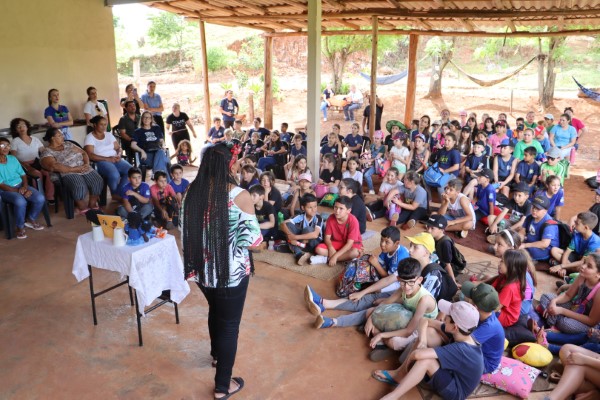 A narrativa A Menina Pretinha, inspirada na trajetória da autora Eva Nadir Silva, presente no encontro, trouxe às crianças uma mensagem de força, representatividade, amor-próprio e valorização da identidade presentes no livro.